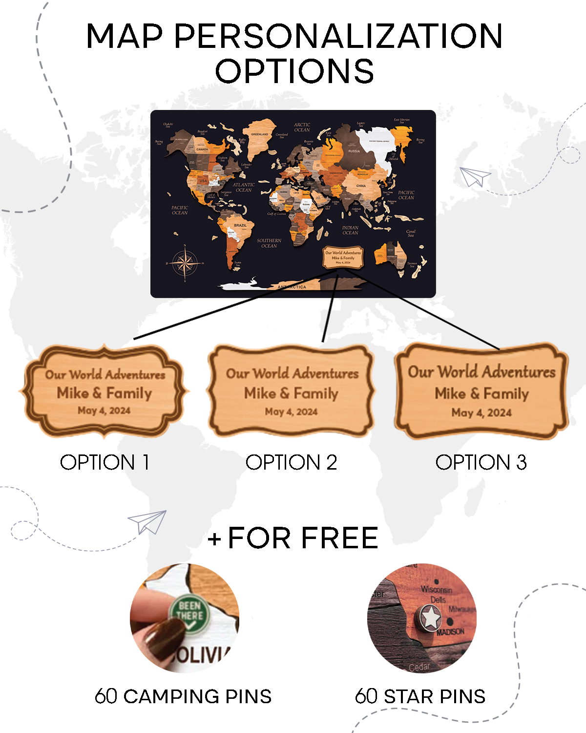 Personalized 3D Wooden World Travel Map Wall Decor, Wall Art, Explore Your Journey!